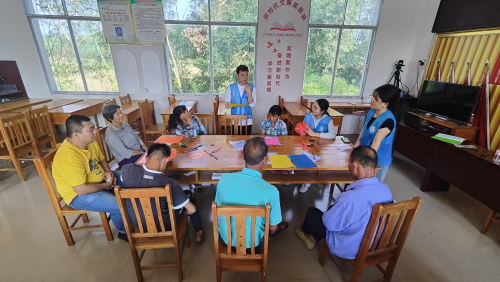 在项目持续走访、收集和更新动态需求后获知,很多精神障碍患者的家属压力大,情绪低落。为回应这一服务需求,针对精神障碍患者的照护者照顾压力大、情绪疏解难、社会互助网络弱等问题,2023年10月24日,零距离社工在思练镇石龙村开展“携手共勉,互励前行”照顾者压力疏导小组,本次小组共有7名精障患者的家属参与。