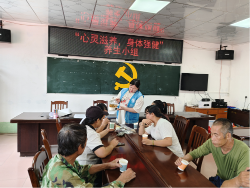 为提升社区居民的自我保健能力,普及健康养生知识,倡导健康文明的生活方式,并丰富居民的文化生活,2024年8月21日上午,零距离“忻小康”项目社工在红渡镇红渡社区开展“心灵滋养,身体强健”养生小组活动,此次小组活动共招募了8名组员参加。