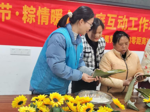 居民在社工指引下制作粽子