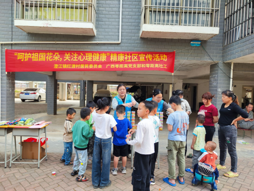 为促进社区居民对儿童心理健康问题的深入理解与关注,关注儿童的心理需求,及时发现并处理潜在的心理问题,同时增进对精神障碍相关知识的理解与认识,减少对精神障碍康复者的歧视。2025年4月12日,在都安瑶族自治县民政局和澄江镇红渡村委员会的支持下,广西零距离社会工作服务中心在红渡村易地搬迁安置点开展了“呵护祖国花朵,关注心理健康”精康社区宣传活动,活动现场气氛热烈,吸引了众多家长和孩子的参与。