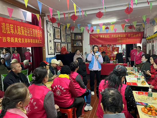 为进一步做好退役军人服务保障工作,切实维护退役军人合法权益,让社区退役军人和家属及时了解退役军人相关政策,2025年1月8日,广西零距离社工携手七星社区在南国星光老年活动中心开展退役军人政策宣传活动,社区退役军人、烈属、残疾人、特困人员等30余人参加了本次活动。
